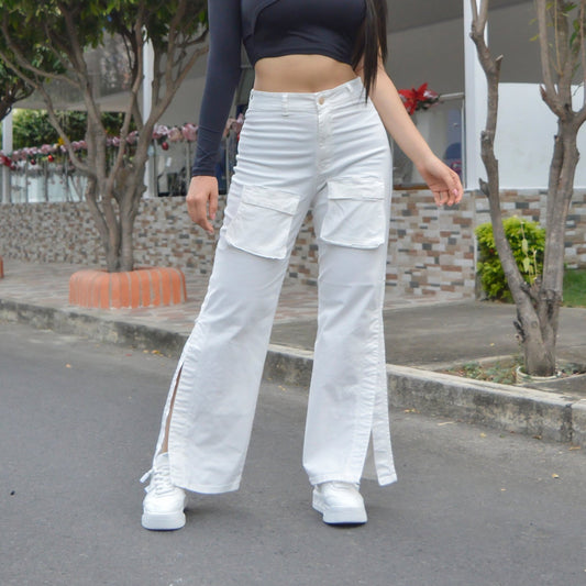 Pantalon Wide Cargo Blanco - 23102B